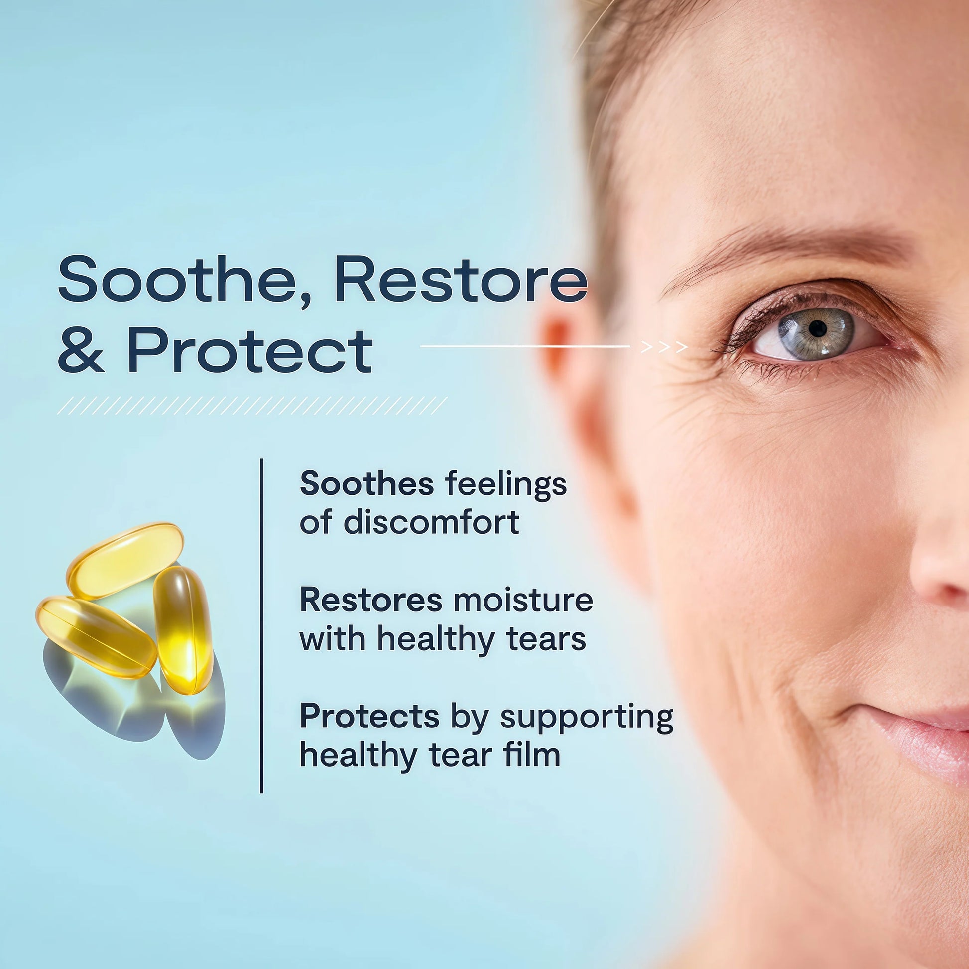 De3 may help with occasional eye dryness, grittiness, burning, or irritation — symptoms often associated with insufficient tear film quality or quantity.